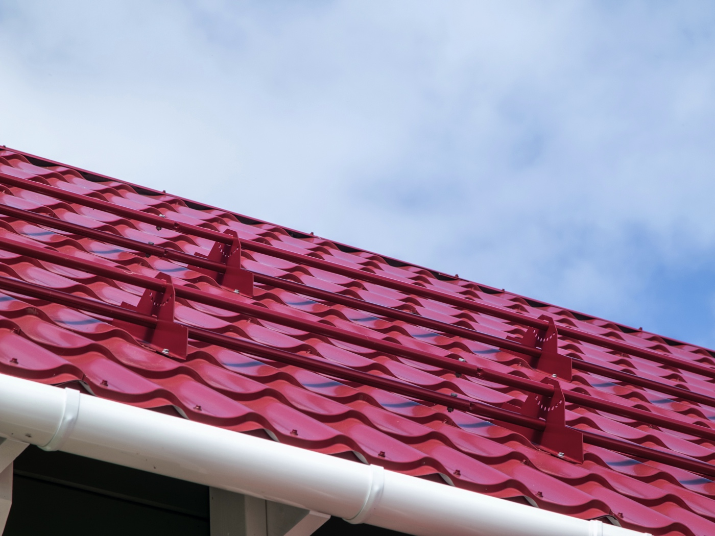 Профиль Монтеррей имитирует классическую форму керамической черепицы, с волнами высотой 24 мм и шагом 350 мм. Это создает визуальный эффект традиционной кровли, но с преимуществами металла: легкостью монтажа и малым весом. Толщина листа 0,45 мм балансирует между прочностью и экономичностью, подходя для большинства жилых и коммерческих объектов. В цвете Красное вино профиль выглядит изысканно, подчеркивая архитектурные особенности здания.