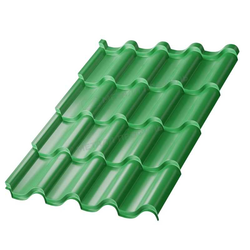Металлочерепица Монтерроса-S от Металл-Профиль с толщиной 0,5 мм и покрытием NormanMP в цвете RAL 6002 Зеленый лист представляет собой надежный кровельный материал, имитирующий натуральную черепицу. Она сочетает эстетику, долговечность и доступную цену, идеально подходя для частных домов и коммерческих объектов. Этот продукт обеспечивает отличную защиту от атмосферных воздействий, прост в монтаже и имеет гарантию производителя.