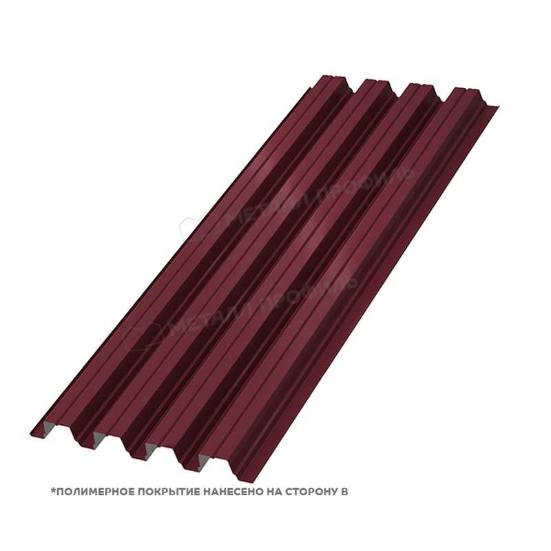 Одним из ключевых преимуществ является высокая прочность, позволяющая использовать материал в конструкциях с большими пролетами без дополнительных опор. Покрытие полиэстер обеспечивает отличную цветостойкость, не выгорая под солнцем, что снижает затраты на обслуживание. Толщина 0.65 мм гарантирует устойчивость к деформациям, а цвет "Красное вино" добавляет визуальной привлекательности, повышая эстетическую ценность объекта. Материал легок в монтаже, совместим с большинством крепежных систем и имеет низкий коэффициент теплового расширения. Экономичность проявляется в долгом сроке службы – до 30 лет, а также в отсутствии необходимости в частой покраске. Кроме того, он экологически безопасен и подлежит вторичной переработке.