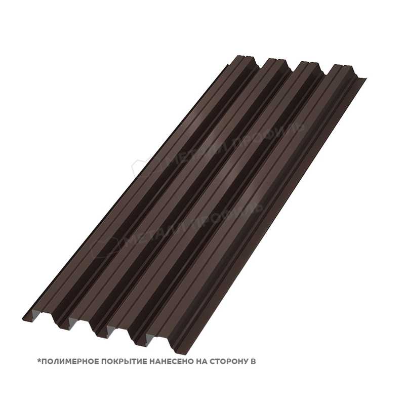 Коллекция профлистов от Металл-Профиль включает разнообразные варианты по цветам, профилям и покрытиям. Модель в цвете RAL 8017 входит в серию, ориентированную на натуральные, теплые тона, которые имитируют природные материалы вроде дерева или камня.